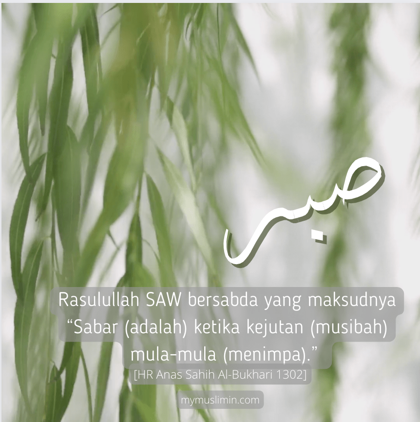 Hadith riwayat Al-Bukhari no. 1302 dan Muslim no. 926 daripada Anas bin Malik RA. Sunnah ini muncul apabila Rasulullah SAW melewati seorang perempuan yang sedang menangis di kubur, lalu menasihatinya untuk bertakwa dengan meninggalkan tangisan kecewa dan bersabar. Wanita itu yang tidak mengenali Baginda SAW meminta beliau dibiarkan kerana musibah tersebut menimpa dirinya dan bukan menimpa orang lain. Apabila diberitahu oleh orang di sekeliling bahawa yang menasihatinya adalah Rasulullah SAW, beliau datang menemui Rasulullah SAW yang kemudian bersabda hadis ini.