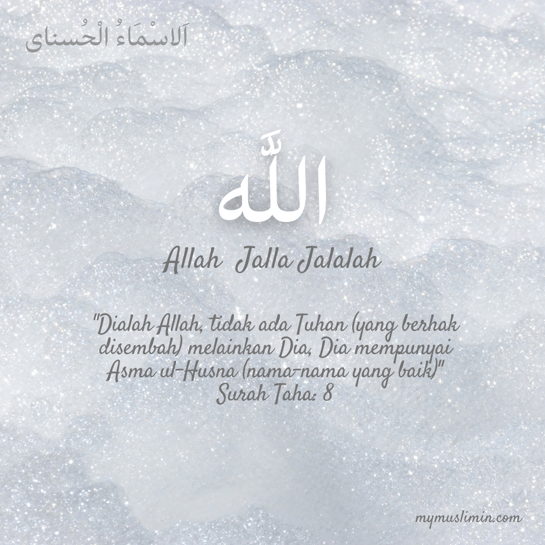 Allah Jalla Jalalah adalah nama bagi suatu Zat yang mesti ada, yang mengadakan sesuatu yang sebelumnya tiada. Wujudnya tanpa permulaan dan tanpa kesudahan. Allah Yang Maha Mulia dan Maha Agung, kewujudanNya adalah abadi.