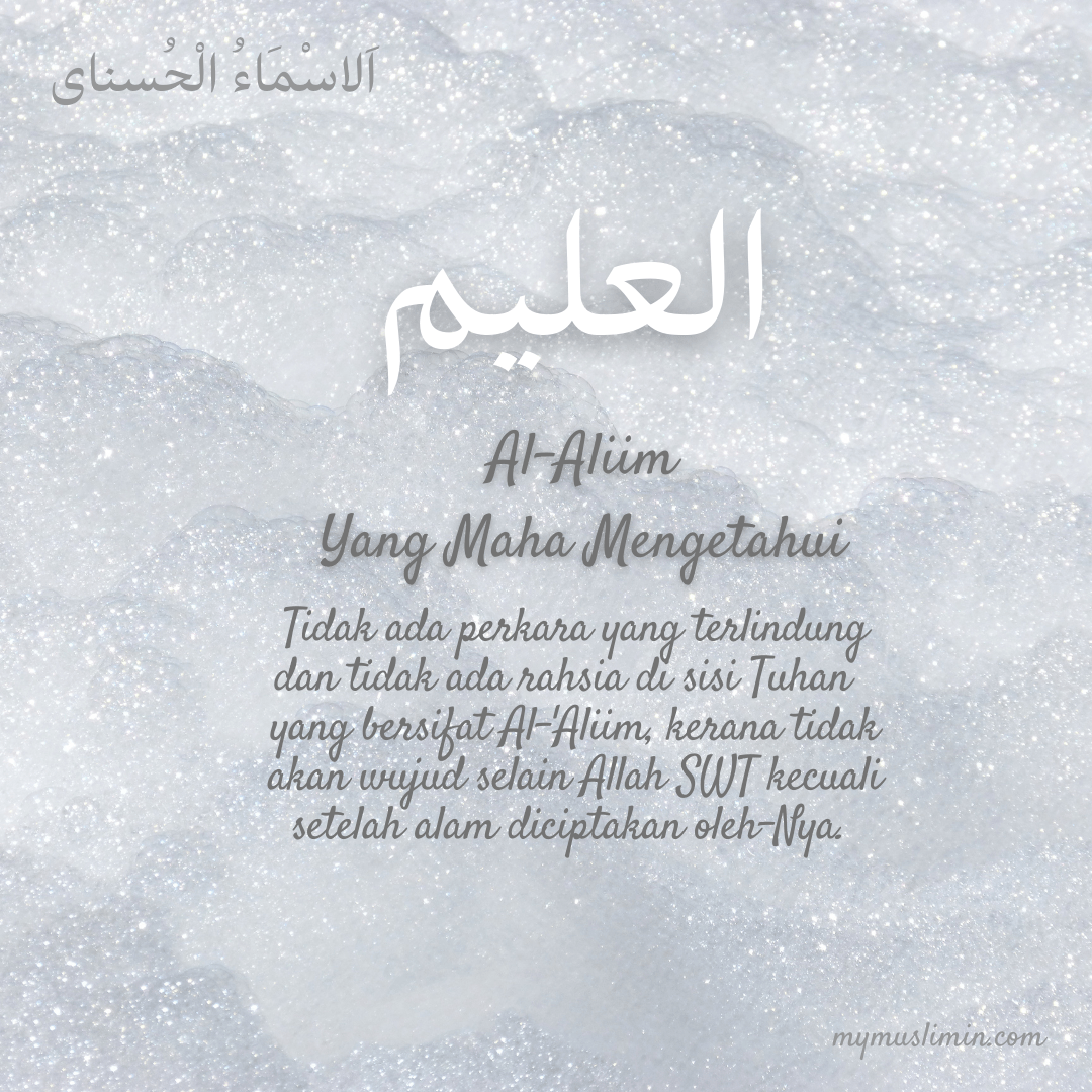 Asmaul Husna yang ke-20 ialah Al-’Aliim yang bermaksud Yang Maha Mengetahui atau Yang Maha Pakar, iaitu kepakaran yang menyeluruh dan selama-lamanya. Berbeza dengan manusia yang bergelar alim atau pakar, pengetahuannya pakar, pengetahuannya tetap mempunyai batas-batas tertentu. Mungkin manusia mencapai tahap kepakaran dalam suatu bidang khusus, tetapi kita tidak alim atau tidak pakar dalam bidang yang lain. Kepakaran manusia mempunyai permulaan, dimulai dengan tidak tahu.