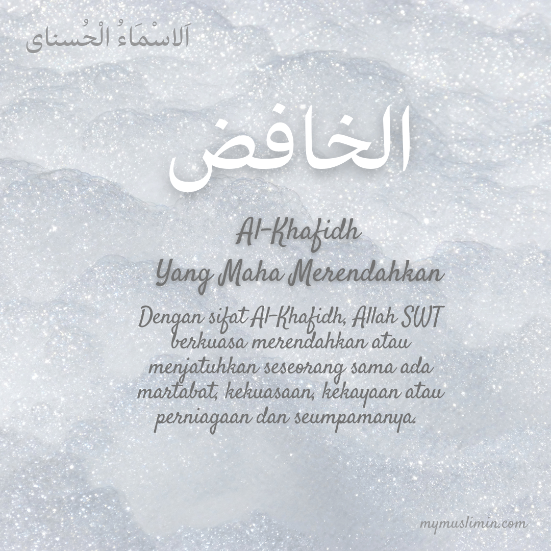 Waspadalah terhadap balasan Allah SWT andainya seseorang itu berusaha menjatuhkan orang lain. Sedangkan Dia mempunyai sifat Al-Khafidh, yakni berkuasa mutlak menjatuhkan sesiapa yang dikehendaki-Nya.