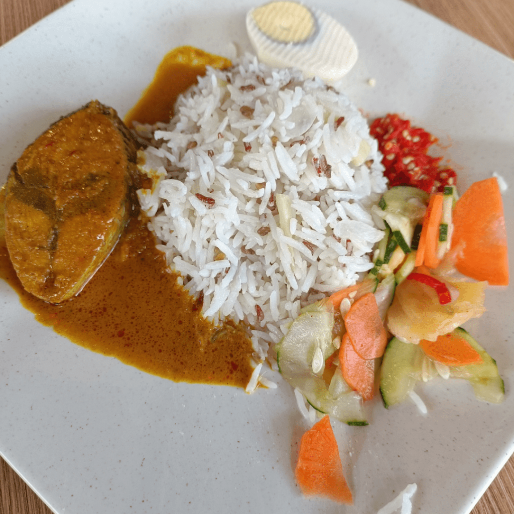 Restoran ini berkonsepkan nasi campur di mana selepas memilih jenis nasi (dagang, kerabu, lemak, biasa), pilihlah lauk yang diingini. Nasi dagang selalunya dipadankan dengan gulai ikan tongkol, nasi kerabu dengan ikan goreng tepung atau daging goreng. Pilihlah lauk-lauk yang disediakan mengikut selera masing-masing. Jika orang pantai barat tidak pasti bagaimana hendak memadankan hidangan di sini, minta tolonglah dengan pekerjanya. InsyaAllah dibantu.