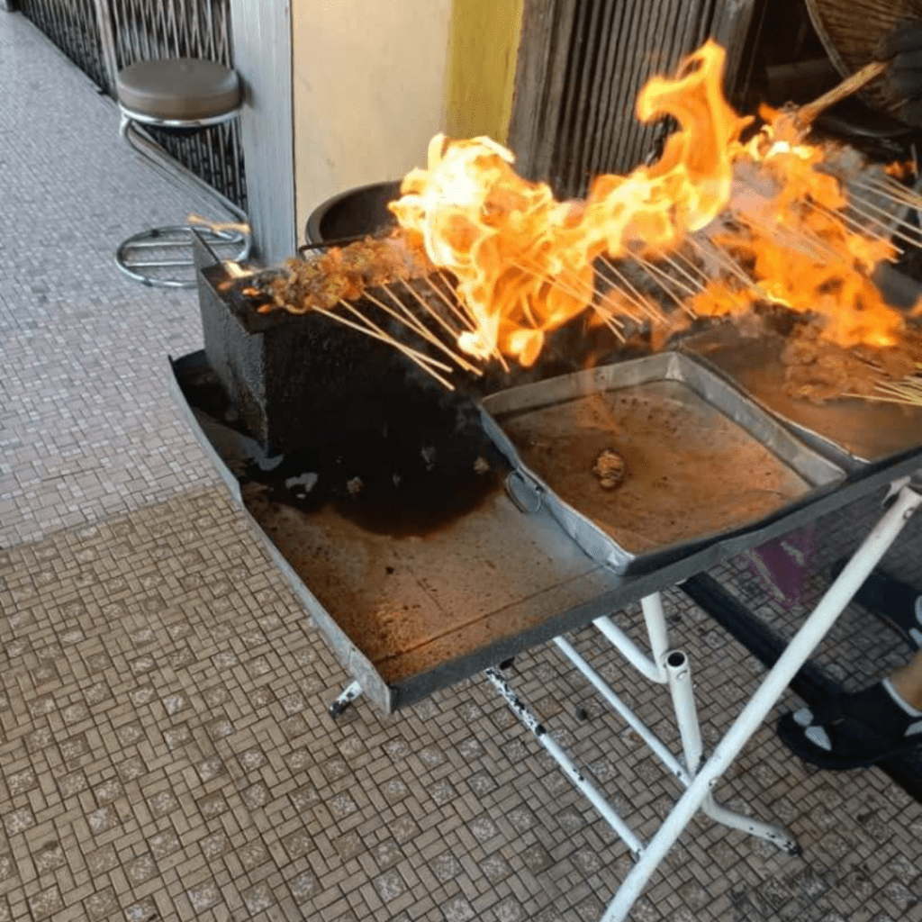 Sate di restoran ini diperap sebati dengan rempah ratus, dan dibakar menggunakan bara kayu arang untuk mendapatkan rasa sate asli yang digemari ramai semenjak dahulu. Sate daging di sini disempurnakan dengan seketul lemak di tengah-tengah lapisan daging untuk menambah keenakan kerana lemak yang dibakar memberi rasa dan tekstur yang berlainan kepada secucuk sate. Sate perut juga lembut dan mengasyikkan. Dipadankan dengan kuah kacang dan timun racik, tiba-tiba tidak perasan tangan sudah diangkat untuk menempah sepinggan lagi!