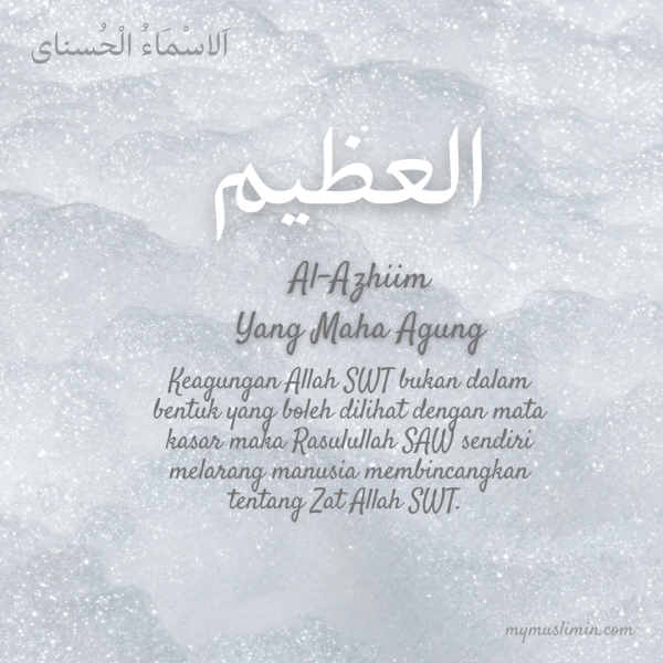 Asmaul Husna yang ke-34 ialah Al-Azhiim yang bererti Tuhan Yang Maha Agung. Maksud agung di sini ialah Zat Tuhan Yang Maha Agung. Oleh kerana keagungan Allah SWT bukan dalam bentuk yang boleh dilihat dengan mata kasar maka Rasulullah SAW sendiri melarang manusia membincangkan tentang Zat Allah SWT.