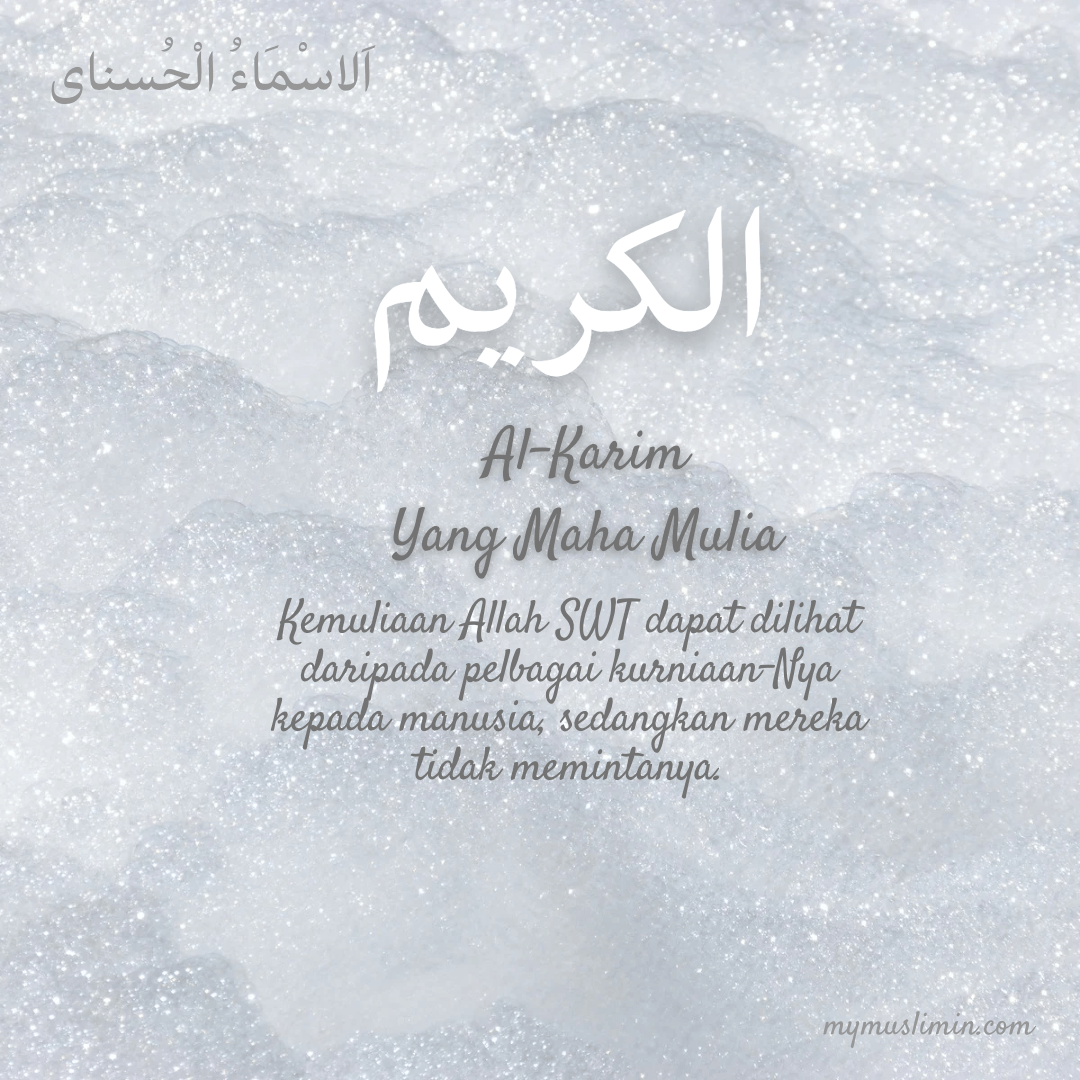 Asmaul-Husna yang ke-43 ialah Al-Karim yang bermaksud Tuhan Yang Maha Mulia. Kemuliaan Allah SWT dapat dilihat daripada pelbagai kurniaan-Nya kepada manusia, sedangkan mereka tidak memintanya.