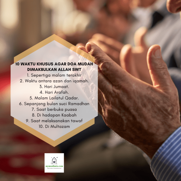 Berdoa boleh dilakukan di mana sahaja dan dalam keadaan apa sekali pun. Akan tetapi terdapat waktu-waktu khusus yang disarankan untuk kita berdoa agar doa mudah dimakbulkan Allah SWT.