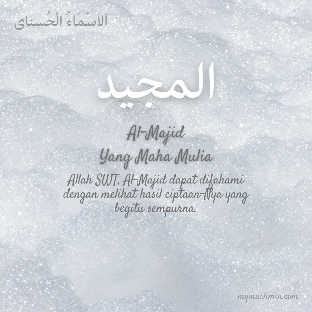 Asmaul Husna yang ke-49 ialah Al-Majid yang membawa erti Yang Maha Mulia atau Yang Maha Tinggi ataupun Yang Maha Ternama. Nama-nama Allah SWT yang telah dihuraikan sebelum ini, boleh dikatakan hampir serupa maknanya. Ia disebabkan perbendaharaan bahasa Melayu yang begitu terhad, tidak mampu menterjemahkan nama Allah SWT secara tepat.