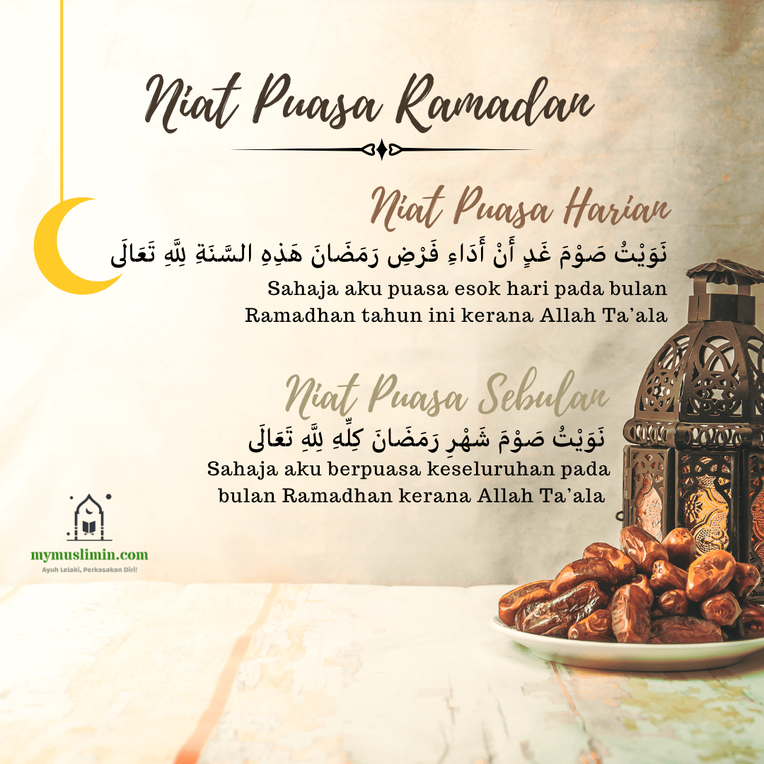 Mymuslimin.com mengucapkan selamat menyambut Ramadan dan selamat berpuasa kepada semua umat Islam di Malaysia dan di mana sahaja anda berada. Bagi mereka yang ingin menyemak semula niat berpuasa harian dan bulanan, kami sertakan di sini untuk memudahkan. Semoga bermanfaat.