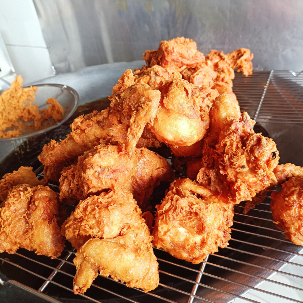 Masuk sahaja ke restoran ini, pelanggan akan disaji dengan visual timbunan ayam goreng panas super crispy yang begitu menyelerakan.