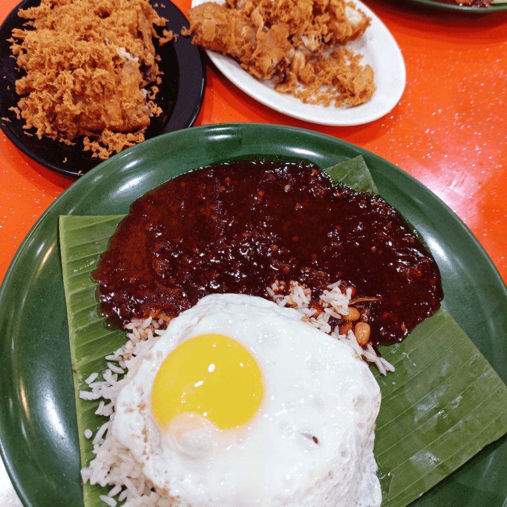 Nasi lemak Restoran Al Ehsan dihidang bersama telur mata kerbau goreng goyang (separuh masak), sambal, kacang dan ikan bilis. Namun begitu, secarik timun pun tidak kelihatan. Nasi lemaknya berbau harum kerana ditanak bersama daun pandan dan halia. Warna nasi lemaknya juga legit, tidak terlalu putih kerana butiran nasinya disalut santan. Cuma, pada pendapat kami, halia yang diletak di dalam nasi lemaknya sedikit terlebih.
