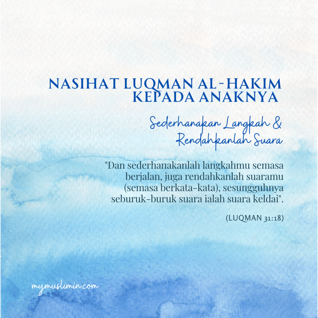 “Dan sederhanakanlah langkahmu semasa berjalan, juga rendahkanlah suaramu (semasa berkata-kata), sesungguhnya seburuk-buruk suara ialah suara keldai”.