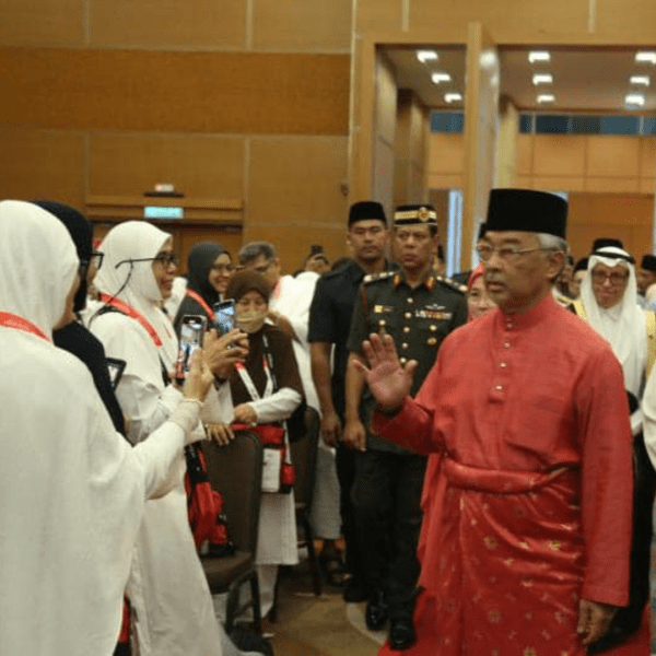 Kebawah Duli Yang Maha Mulia Seri Paduka Baginda Yang di-Pertuan Agong Al-Sultan Abdullah Ri'ayatuddin Al-Mustafa Billah Shah serta Kebawah Duli Yang Maha Mulia Seri Paduka Baginda Raja Permaisuri Agong Tunku Azizah Aminah Maimunah Iskandariah berkenan mencemar duli berangkat hadir untuk mengucapkan selamat jalan kepada 355 orang bakal Jemaah Haji Malaysia di Kompleks Haji TH, Sepang (Movenpick) hari ini.
