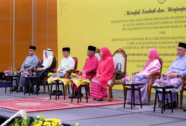 6 JUN 2023: Kebawah Duli Yang Maha Mulia Seri Paduka Baginda Yang di-Pertuan Agong Al-Sultan Abdullah Ri’ayatuddin Al-Mustafa Billah Shah serta Kebawah Duli Yang Maha Mulia Seri Paduka Baginda Raja Permaisuri Agong Tunku Azizah Aminah Maimunah Iskandariah berkenan mencemar duli berangkat hadir untuk mengucapkan selamat jalan kepada 355 orang bakal Jemaah Haji Malaysia di Kompleks Haji TH, Sepang (Movenpick) hari ini.