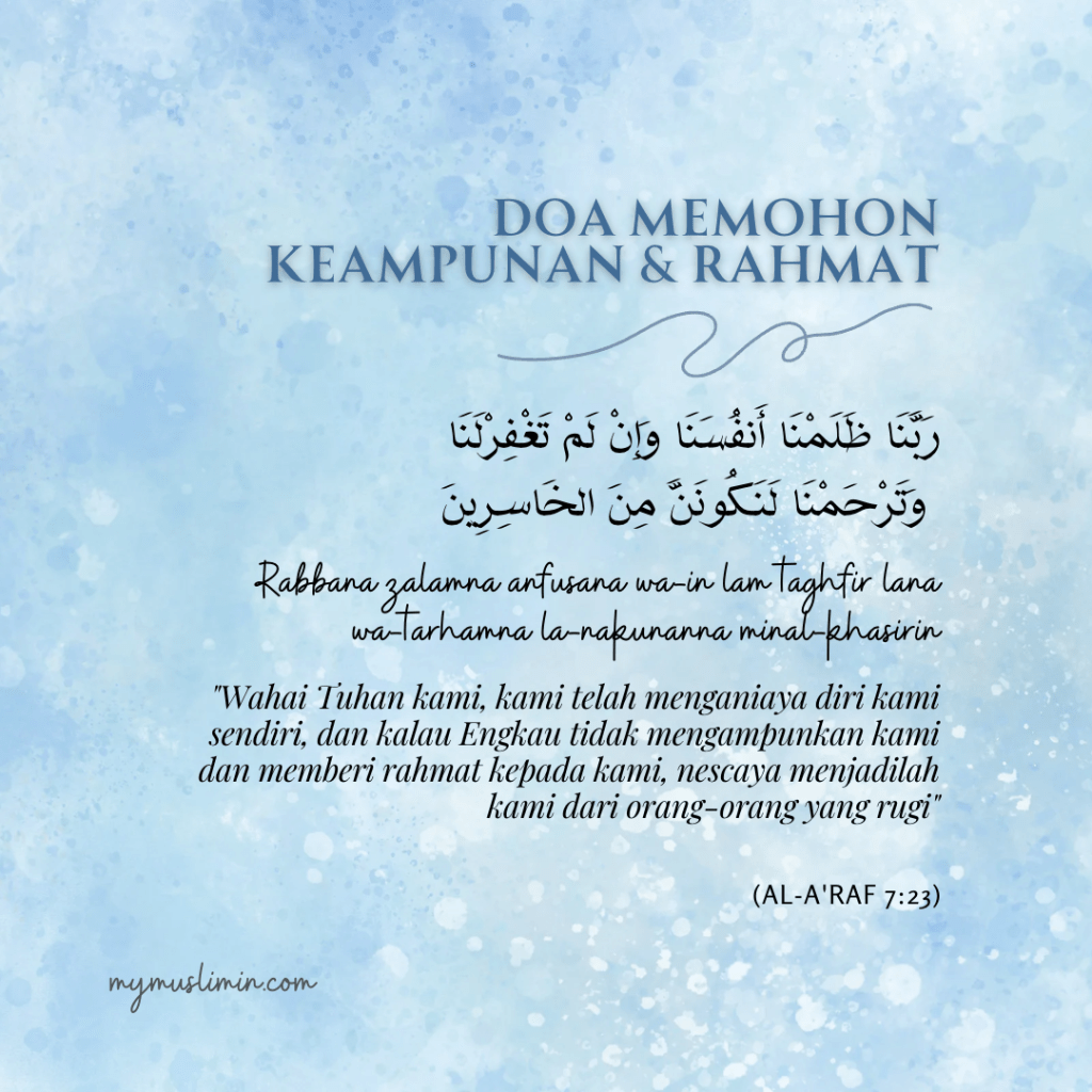 “Wahai Tuhan kami, kami telah menganiaya diri kami sendiri, dan kalau Engkau tidak mengampunkan kami dan memberi rahmat kepada kami, nescaya menjadilah kami dari orang-orang yang rugi”