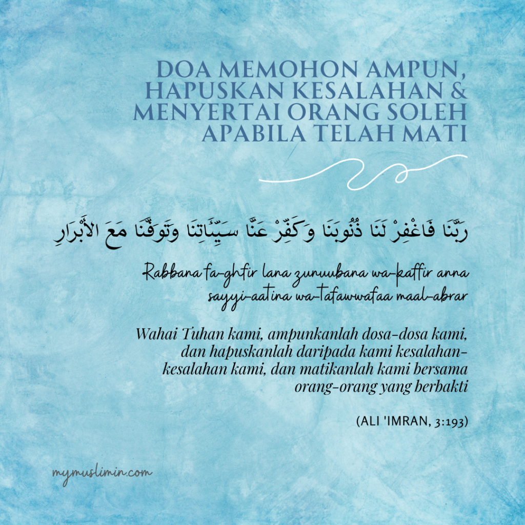 Wahai Tuhan kami, ampunkanlah dosa-dosa kami, dan hapuskanlah daripada kami kesalahan-kesalahan kami, dan matikanlah kami bersama orang-orang yang berbakti