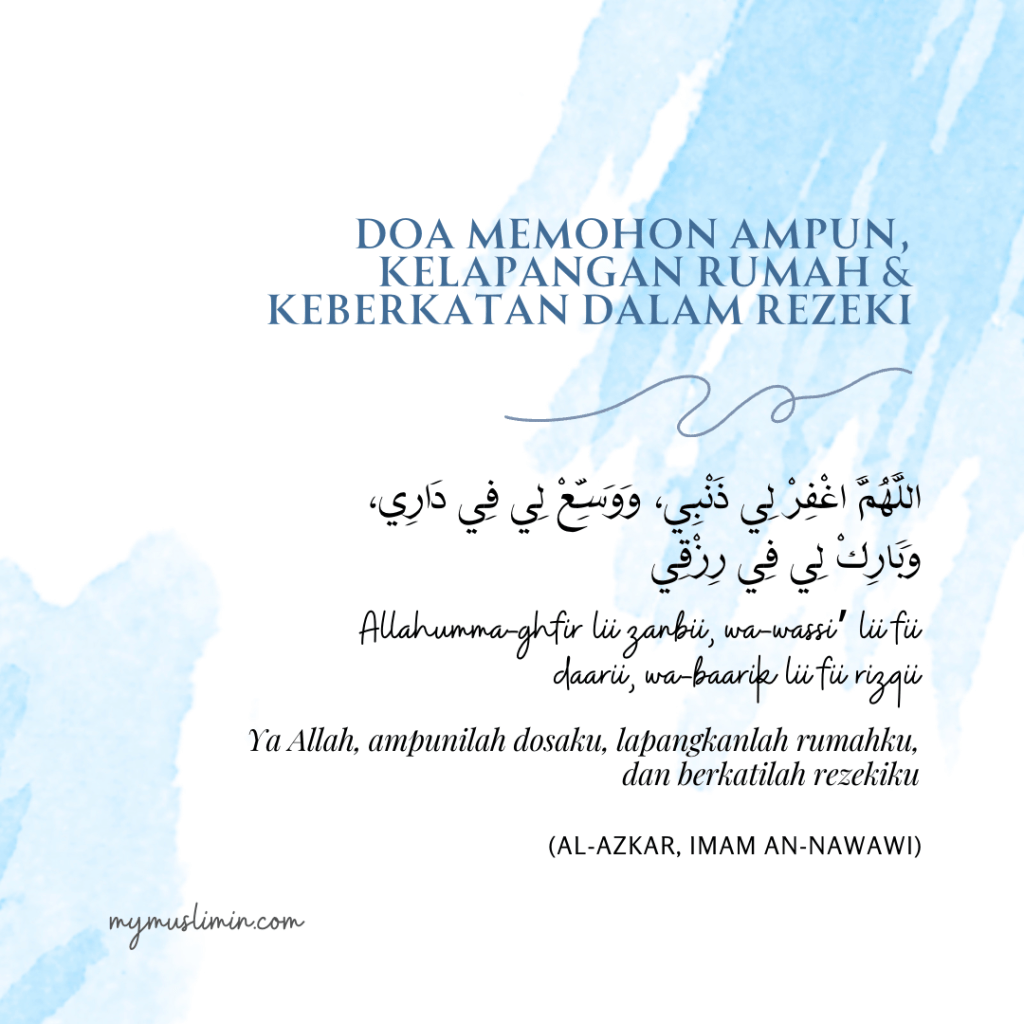 Ya Allah, ampunilah dosaku, lapangkanlah rumahku, dan berkatilah rezekiku.