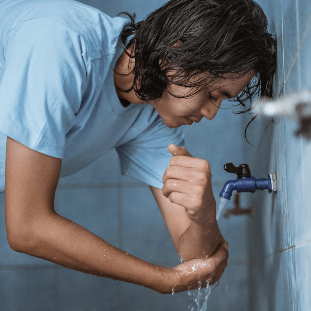 - Membasuh tangan hingga ke siku.