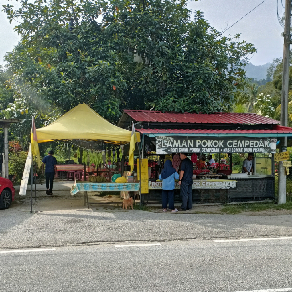 Selepas Subuh, kami turun sebentar ke Kuala Klawang untuk menikmati sarapan di Roti Canai Pokok Cempedak. Dalam Waze, tempat ini ialah Nasi Lomak Daun Kuala Klawang dan kemudiannya ditukar kepada Laman Pokok Cempedak sebelum dikenali sebagai Roti Canai Pokok Cempedak kerana lokasi gerainya di bawah pokok cempedak.