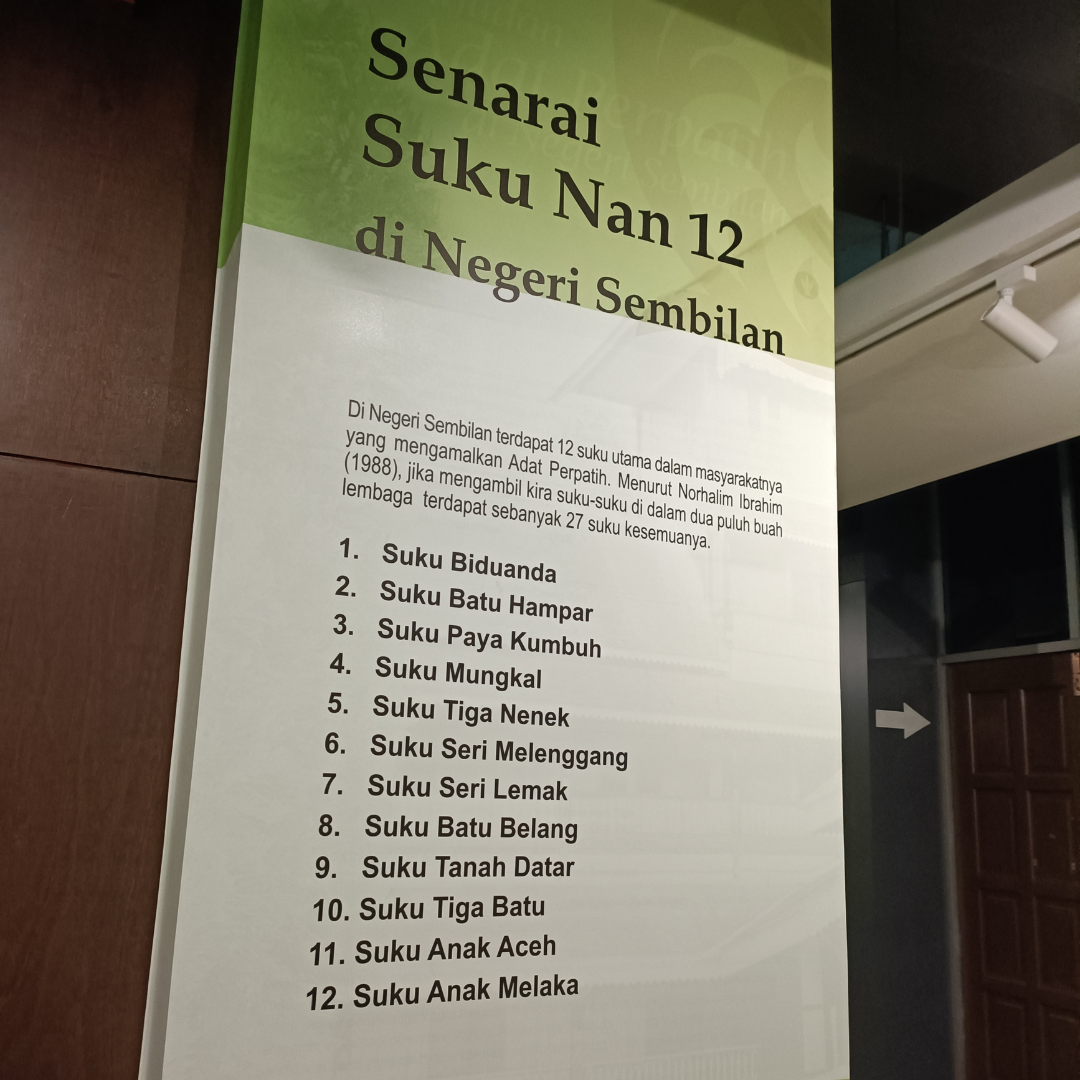 Lokasi Muzium Adat di Negeri Sembilan ini sangat bertepatan kerana negeri ini cukup dikenali dengan identitinya sebagai ‘Tanah Beradat’. Terdapat juga segmen khusus tentang Adat Perpatih yang digunapakai di Negeri Sembilan sebagai sebuah negeri beradat.