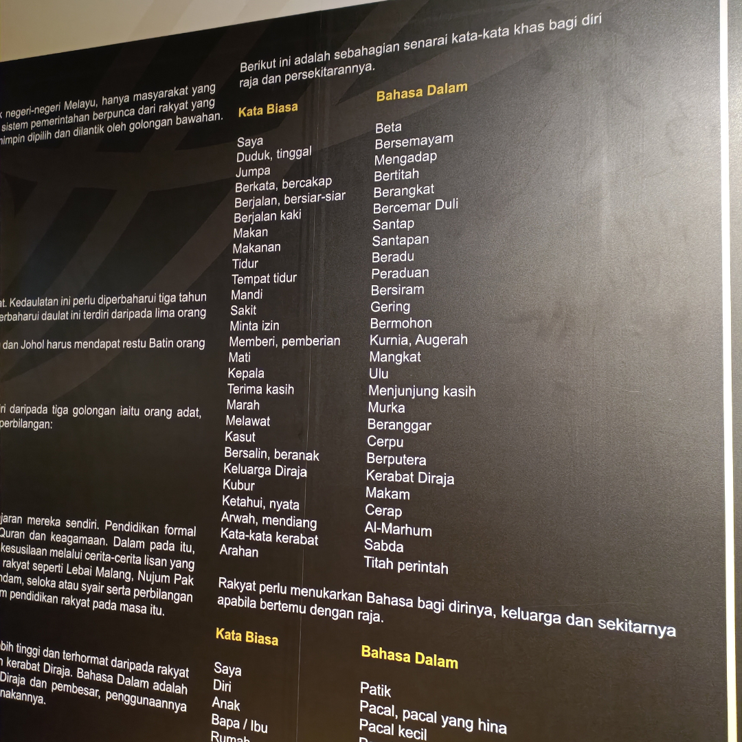 Aras ini mempamerkan tentang kegiatan intelektual di istana dan rakyat serta institusi Kesultanan Raja-raja Melayu.