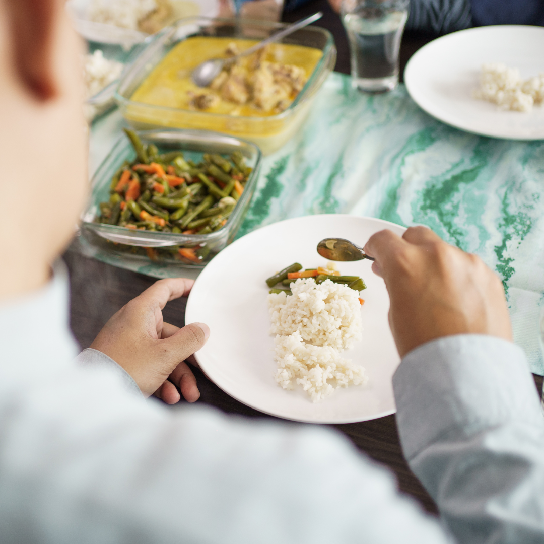 Maksudnya: “Bacalah Bismillah, makanlah dengan tangan kananmu dan makanlah makanan yang paling hampir denganmu.”