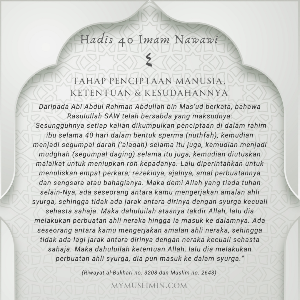 Hadis 40 Imam Nawawi: Hadis 4 – Tahap Penciptaan Manusia, Ketentuan & Kesudahannya