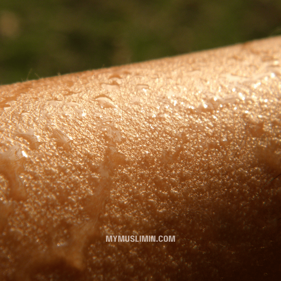 Maksudnya: “Manusia itu akan berada di dalam peluh mengikut tahap amalan mereka. Ada di antaranya yang peluhnya sehingga ke tumit, ada di antaranya juga yang peluhnya sehingga ke lutut, ada di antaranya yang peluhnya sehingga ke pinggang dan ada yang tenggelam di dalam peluhnya. al-Miqdad berkata lagi bahawa Rasulullah SAW mengisyaratkan dengan tangan Baginda SAW ke mulutnya.”