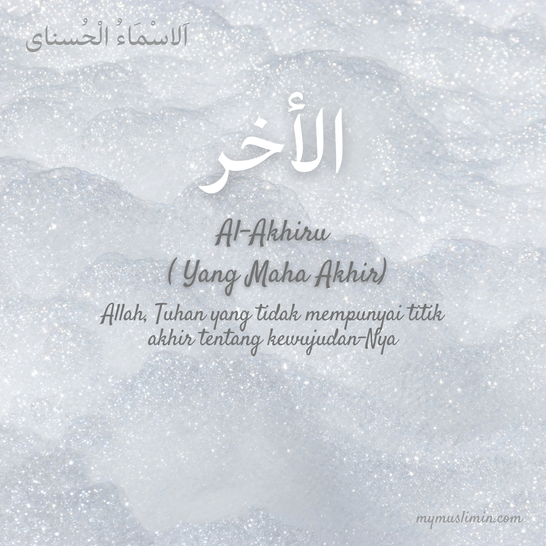 Asmaul Husna yang ke-74 ialah Al-Akhiru membawa makna Tuhan yang tidak mempunyai titik akhir tentang kewujudan-Nya. Oleh kerana Dia adalah Zat maha Suci paling awal, maka Dia juga Tuhan Yang Maha Suci, yang terakhir-Nya tanpa titik penyudah.
