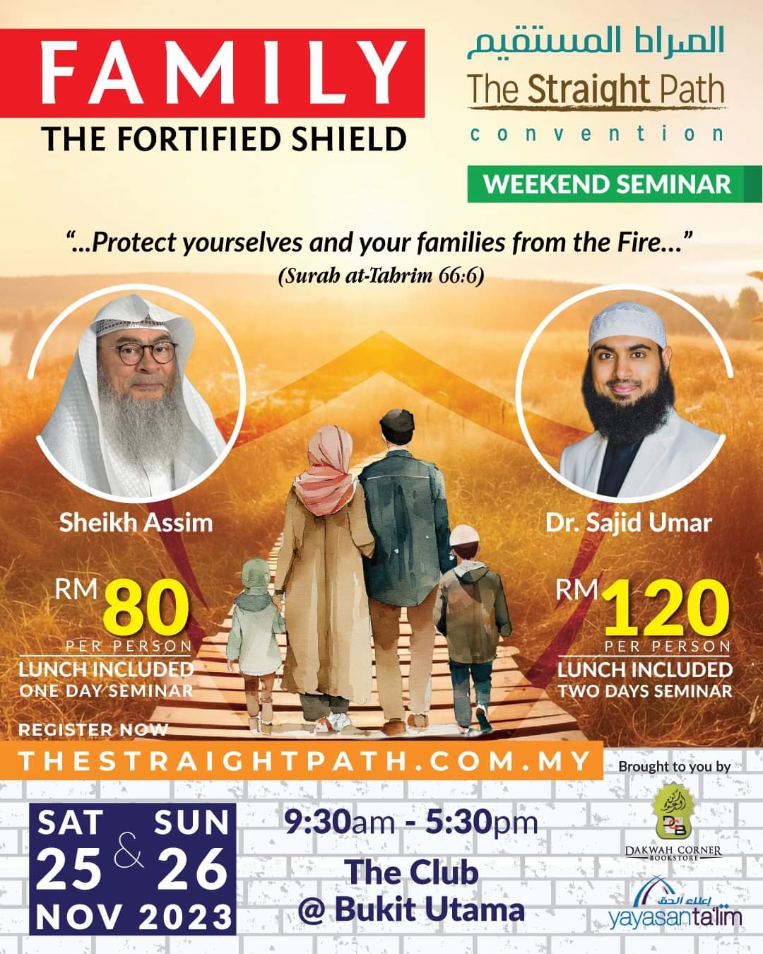 Want to learn how to be steadfast together with our loved ones? Enrol in The Straight Path Convention”s enriching weekend seminar FAMILY: THE FORTIFIED SHIELD! Registration closing is just around the corner, so get your seats now!