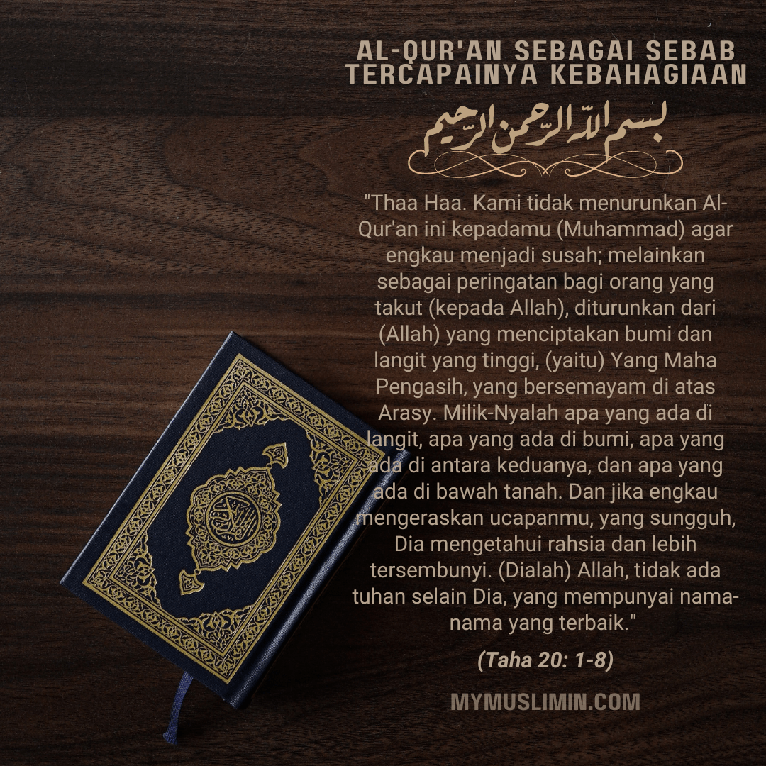 Kami tidaklah menurunkan Al-Qur’an kecuali sebagai pengingat agar dengannya kamu mengingatkan orang yang takut dari azab Allah dan agar dia mendapatkan manfaat dari- Nya. Kerana Al-Qur’an Kami jadikan sebagai rahmat, cahaya dan petunjuk menuju syurga. Kamu tidak harus memaksa mereka untuk beriman,