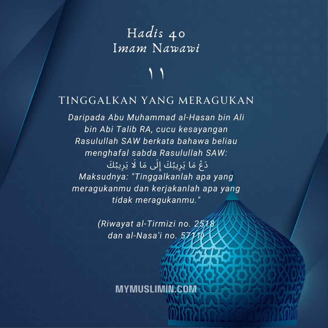 Maksudnya: “Tinggalkanlah apa yang meragukanmu dan kerjakanlah apa yang tidak meragukanmu.”