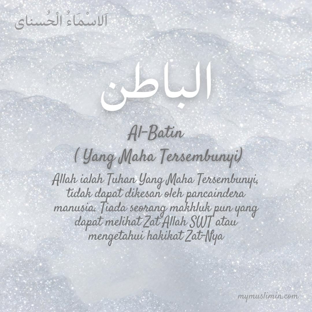 Asmaul-Husna yang ke-76 ialah Al-Batin yang bererti Tuhan itu Maha Tersembunyi. Dalam erti kata Dia tidak dapat dikesan oleh pancaindera manusia. Tiada seorang makhluk pun yang dapat melihat Zat Allah SWT atau mengetahui hakikat Zat-Nya.