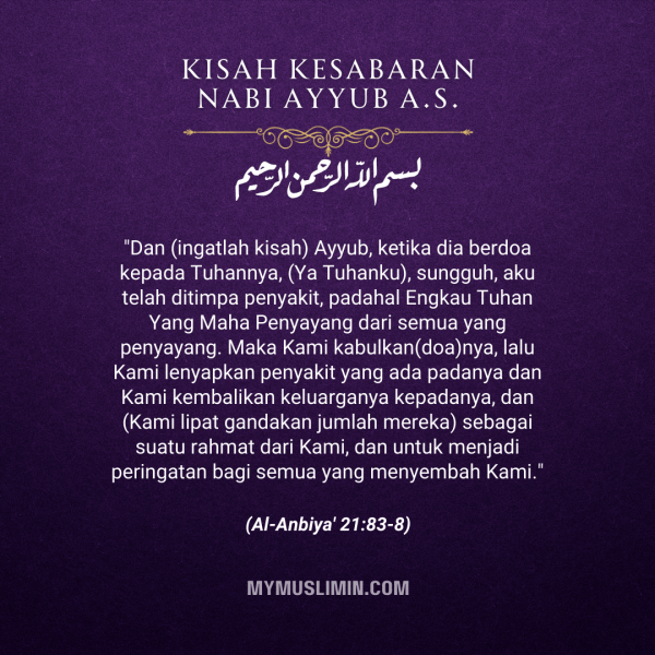 Klik untuk membaca tafsir ringkas Surah al-Anbiya' 21:83-84 yang mengajar manusia tentang pentingnya kesabaran dalam menempuh ujian Allah SWT seperti kesabaran Nabi Ayyub a.s.