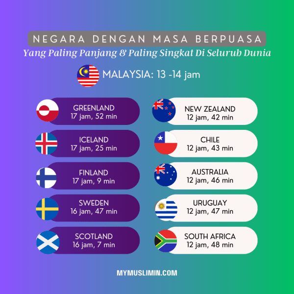 Lebih daripada 1 bilion umat Islam sedang menunaikan tanggungjawab berpuasa di bulan Ramadan yang mulia ini. Bergantung kepada lokasi negara anda di dunia, masa berpuasa berlainan di seluruh dunia dalam lingkungan 12 sehingga hampir 18 jam.