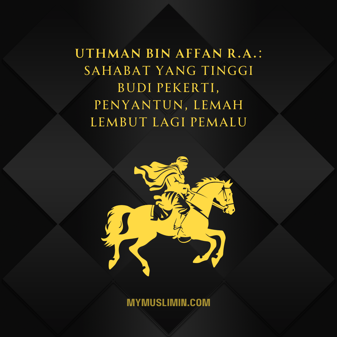 Saidina Uthman Bin Affan R.A. adalah Khalifah Islam yang ketiga selepas Saidina Umar al-Khattab R.A. Beliau telah memerintah Kerajaan Islam hampir sebelas tahun lamanya dari tahun Masihi 644 hingga 655 Masihi. Beliau memperolehi gelaran “Zun Nurain” yang ertinya yang memiliki dua cahaya. Sebabnya ialah kerana Rasulullah SAW telah mengahwinkannya dengan dua orang puterinya iaitu yang pertama kali dengan Ruqayah dan selepas wafatnya semasa Perang Badar maka Rasulullah SAW mengahwinkannya pula dengan Kalthum. Demikian besarnya kecintaan dan penghormatan Rasulullah, terhadap Saidina Uthman R.A. Tatkala isterinya yang kedua itu meninggal dunia, Rasulullah SAW telah berkata kepadanya, “Jika ada anak perempuanku lagi hai Uthman, tentu engkau ku ambil sebagai menantu.”
