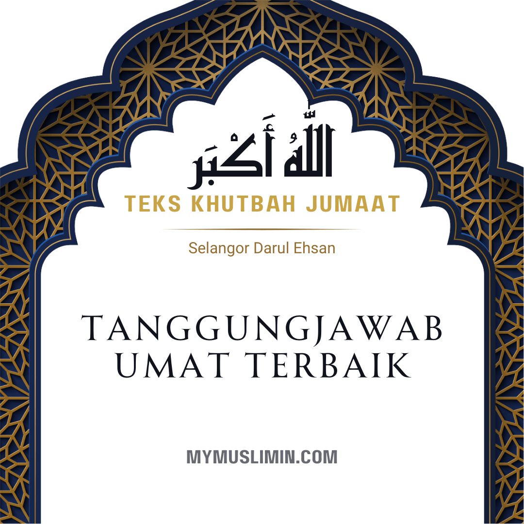 Saya menyeru agar kita bersama-sama meningkatkan ketakwaan kita kepada Allah SWT dengan melaksanakan segala perintah-Nya dan meninggalkan segala perkara yang dilarang-Nya. Semoga kita semua diberi kebahagiaan dan kejayaan di dunia dan akhirat. Pada hari yang mulia ini mimbar akan membicarakan khutbah bertajuk “Tanggungjawab Umat Terbaik”.