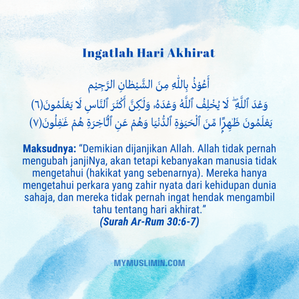 Takutlah kepada Allah SWT dan ketahuilah bahawa kita semua telah melalui dua alam yang fana dan nanti akan menuju pula ke alam yang kekal abadi. Kehidupan di dunia ini hakikatnya tiada satu pun yang bernilai di sisi Allah SWT. Ia hanyalah ibarat hiburan dan permainan. Justeru, janganlah lalai!