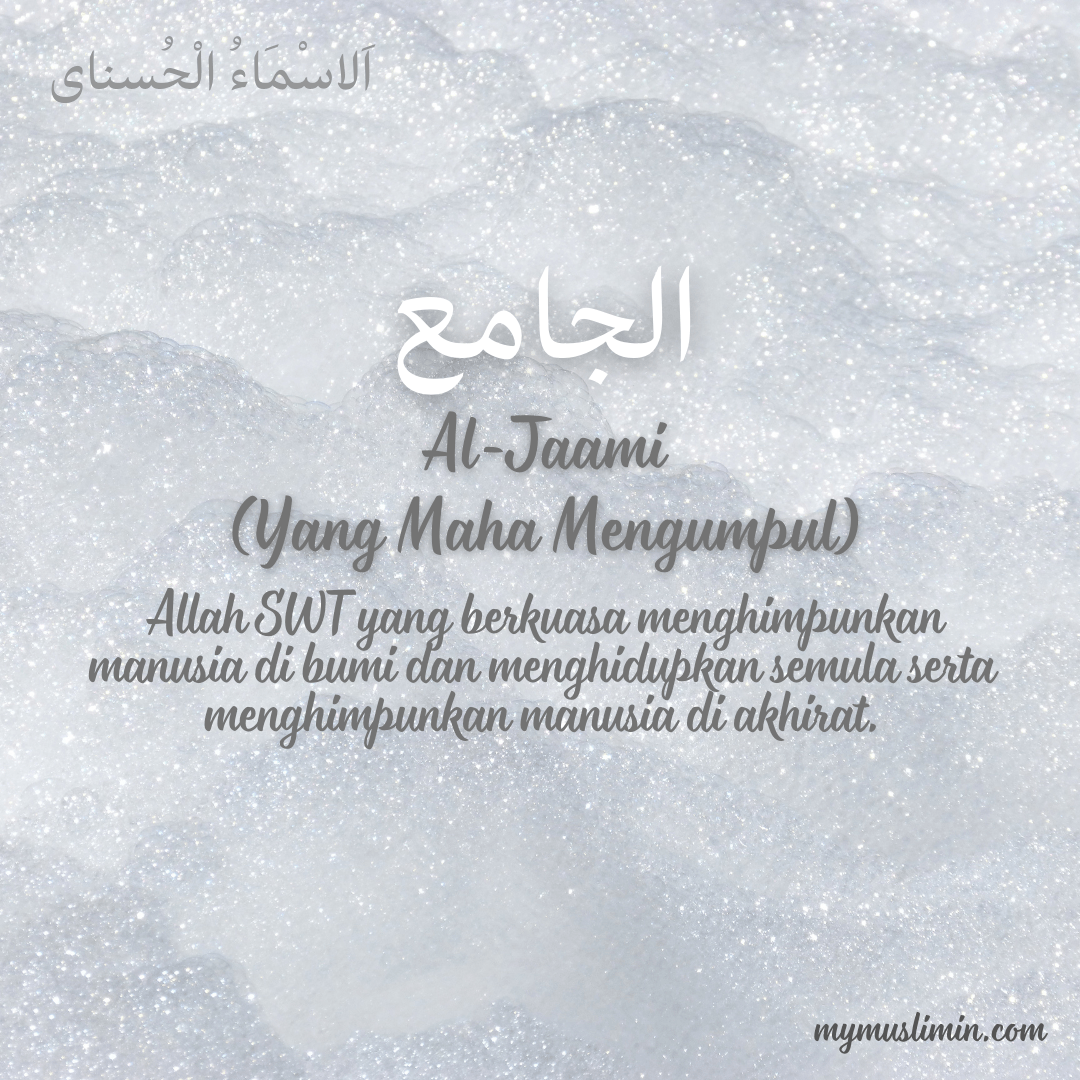 Asma ul-Husna yang ke-87 ialah Al-Jaami ( الجامع) yang bererti: Tuhan Yang Maha Menghimpunkan, berkuasa menghimpunkan manusia di sebuah planet bernama bumi dan tidak pada planet-planet lain. Yang lebih utama bahawa Allah SWT yang berkuasa menghidupkan semula dan menghimpunkan manusia di akhirat.