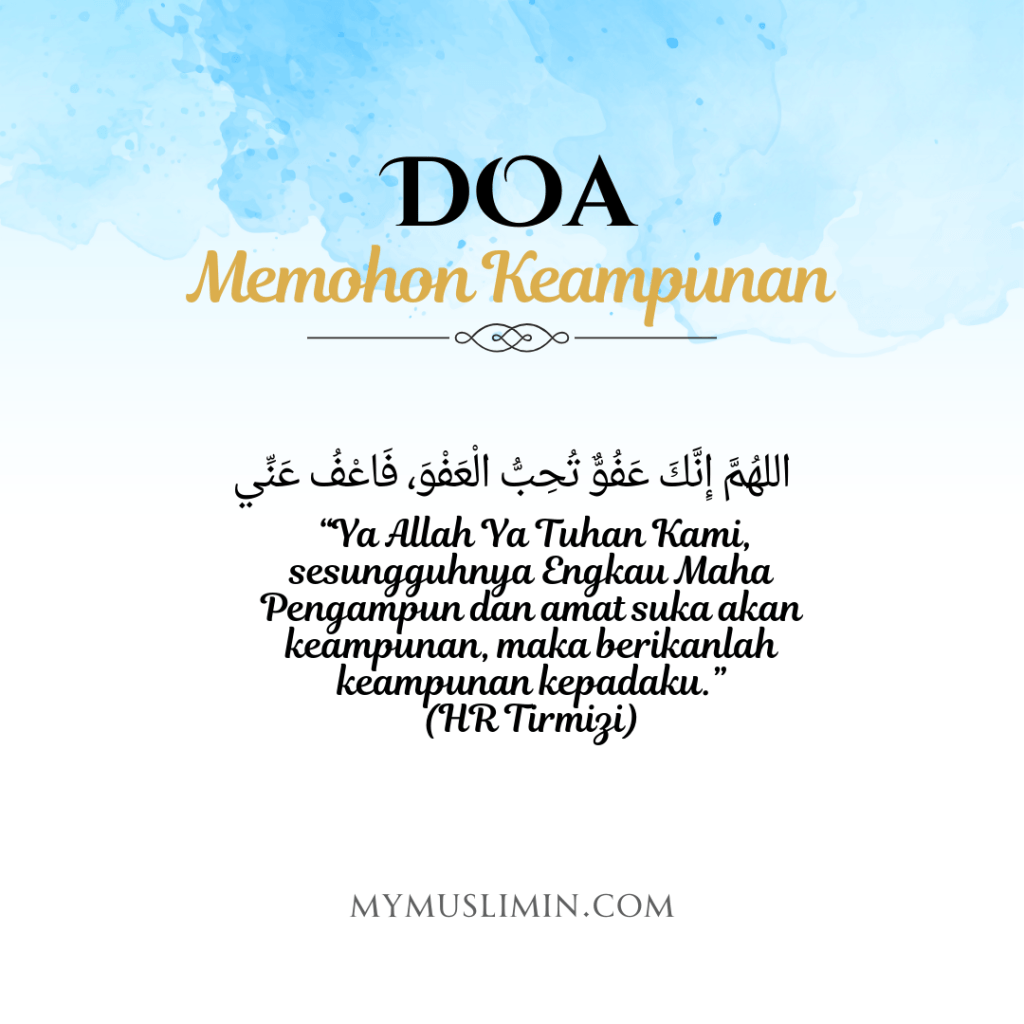 Maksudnya: “Ya Allah Ya Tuhan Kami, sesungguhnya Engkau Maha Pengampun dan amat suka akan keampunan, maka berikanlah keampunan kepadaku.”
