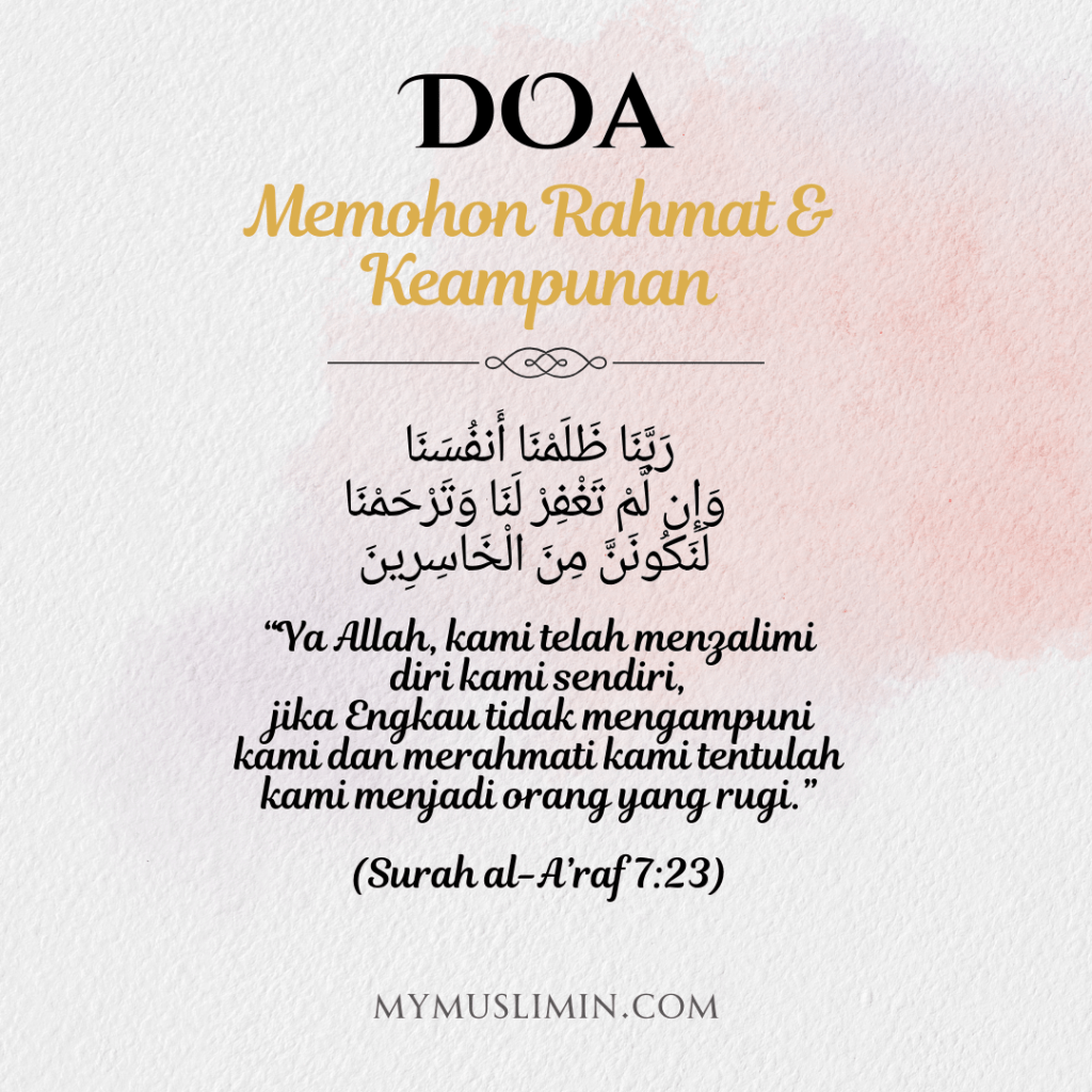 Maksudnya: “Ya Allah, kami telah menzalimi diri kami sendiri, jika Engkau tidak mengampuni kami dan merahmati kami tentulah kami menjadi orang yang rugi.”