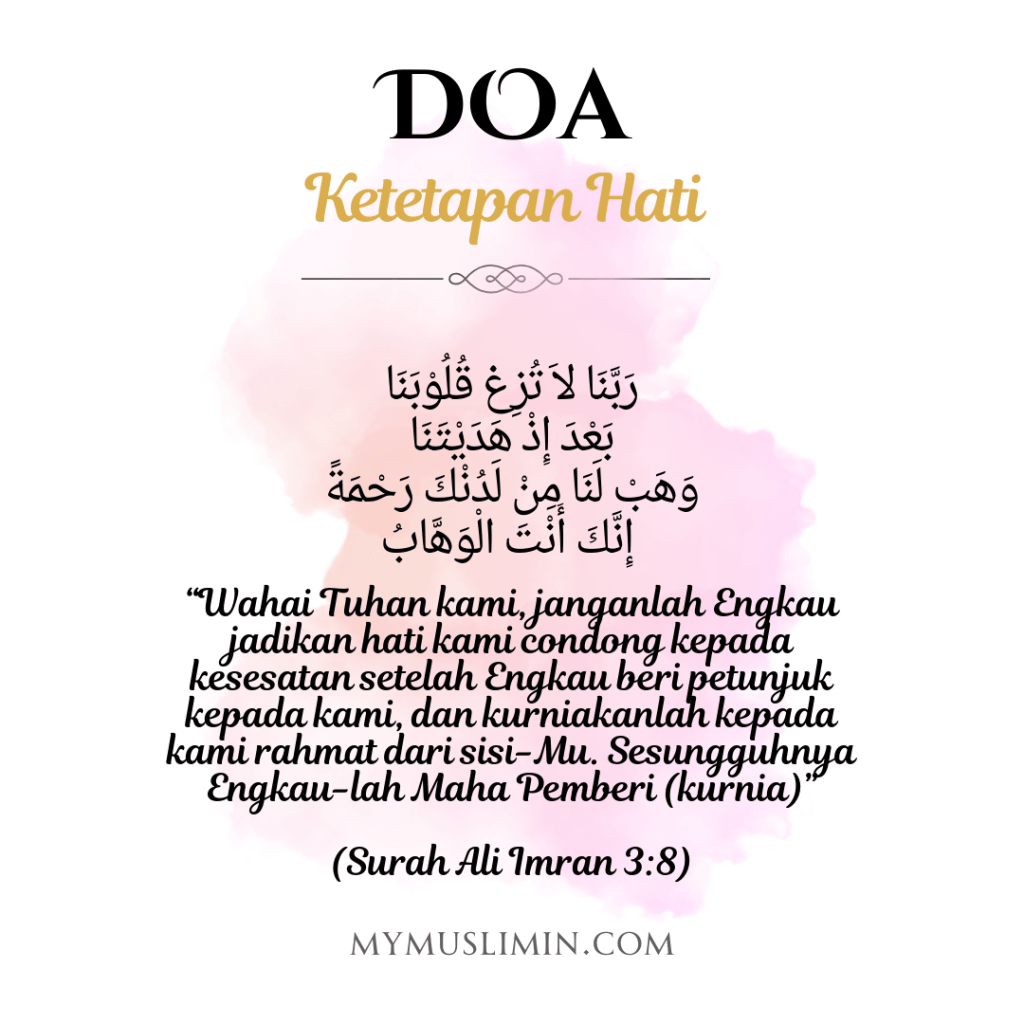 Maksudnya: “Wahai Tuhan kami, janganlah Engkau jadikan hati kami condong kepada kesesatan setelah Engkau beri petunjuk kepada kami, dan kurniakanlah kepada kami rahmat dari sisi-Mu. Sesungguhnya Engkau-lah Maha Pemberi (kurnia).”