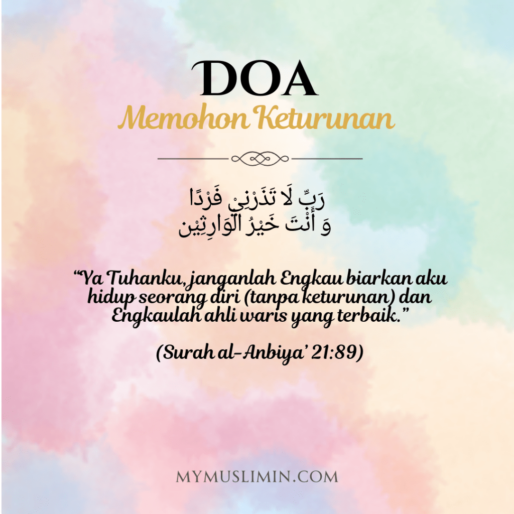 Maksudnya: “Ya Tuhanku, anugerahkanlah kepadaku (seorang anak) yang termasuk dalam kalangan orang-orang yang soleh.”