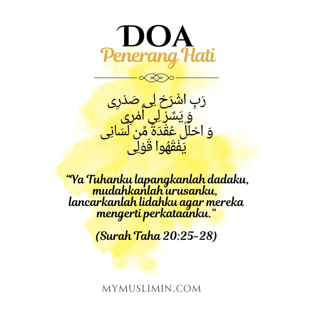 Maksudnya: “Ya Tuhanku lapangkanlah dadaku, mudahkanlah urusanku, lancarkanlah lidahku agar mereka mengerti perkataanku.”