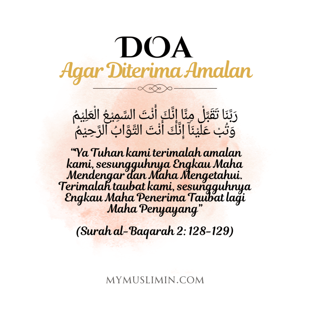 Maksudnya: “Ya Tuhan kami terimalah amalan kami, sesungguhnya Engkau Maha Mendengar dan Maha Mengetahui. Terimalah taubat kami, sesungguhnya Engkau Maha Penerima Taubat lagi Maha Penyayang.”