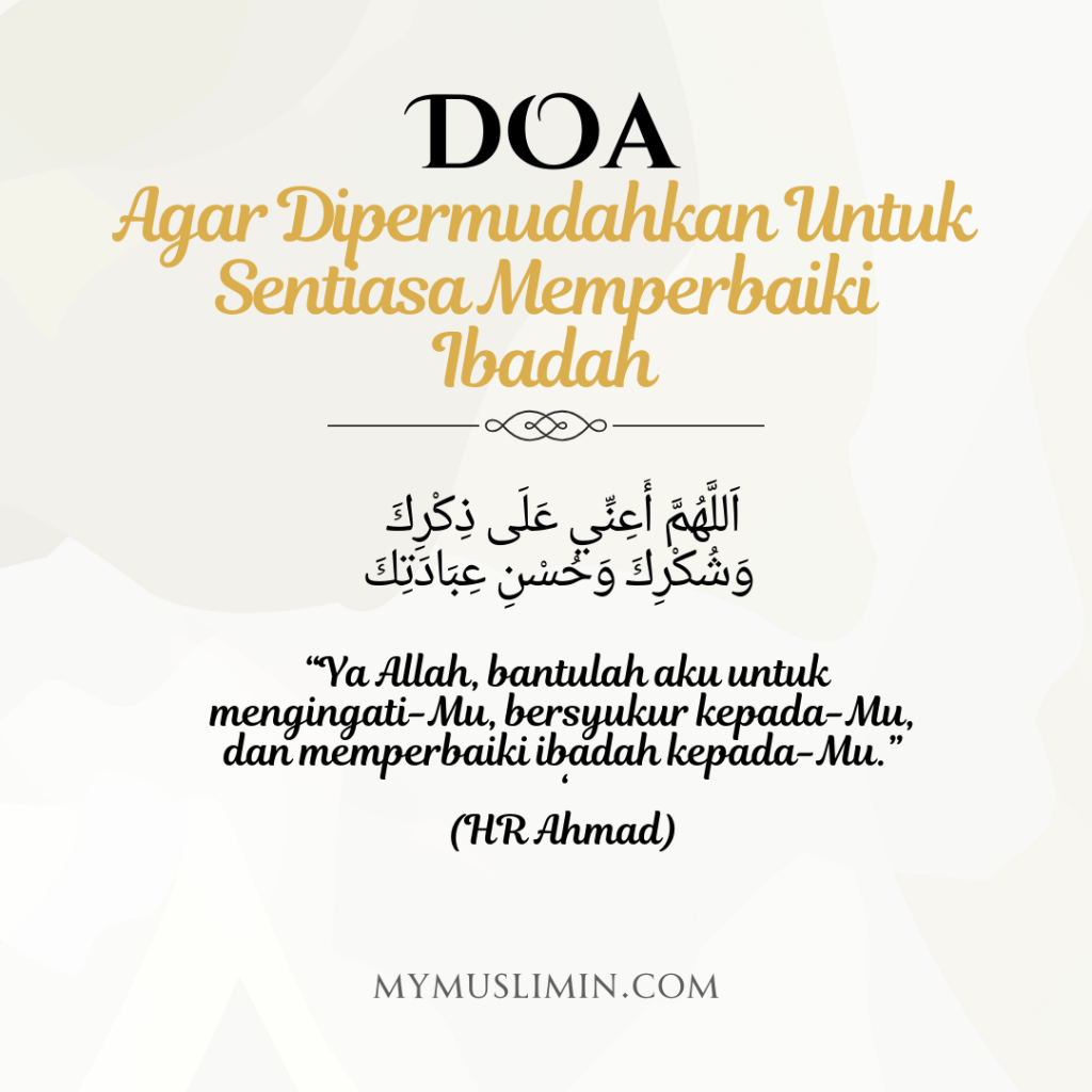 Maksudnya: “Ya Allah, bantulah aku untuk mengingati-Mu, bersyukur kepada-Mu, dan memperbaiki ibadah kepada-Mu.”