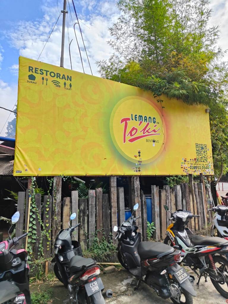 Kalau singgah di Bentong, Pahang, jangan lepaskan peluang mencuba lemang lazat yang dibakar sempurna, dipadankan dengan rendang asli yang mengekalkan rasa tradisional. Sampai terangkat kening, tak hirau orang lalu-lalang! Ayam bakar di Lemang To’ki pun padu, lebih-lebih lagi bila dicicah dengan sambal asam yang menyengat. Selain lemang dan ayam bakar, ada juga pilihan sarapan seperti goreng-goreng dan roti canai. Untuk makan tengah hari, jangan lepaskan gulai tempoyak dan gulai kawah yang menjadi menu signature di sini. Nak makan kambing bakar pun boleh—perapan dia sedap, cecahan pun mantap! Ingat, kalau ke Bentong, wajib singgah sini dulu!