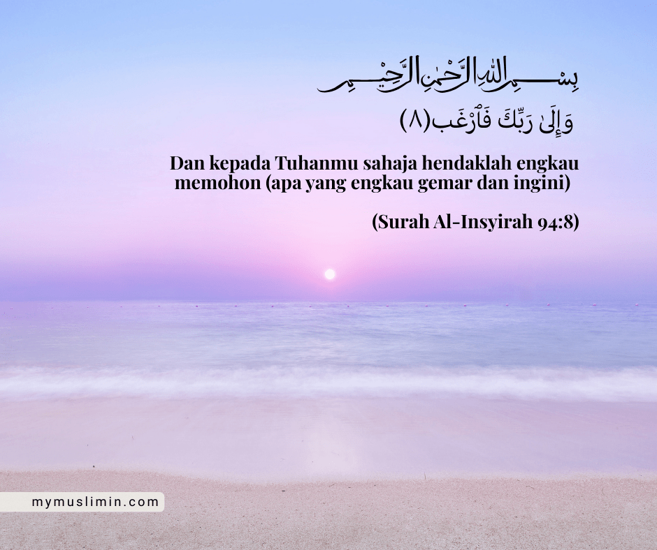 Dan kepada Tuhanmu sahaja hendaklah engkau memohon (apa yang engkau gemar dan ingini).