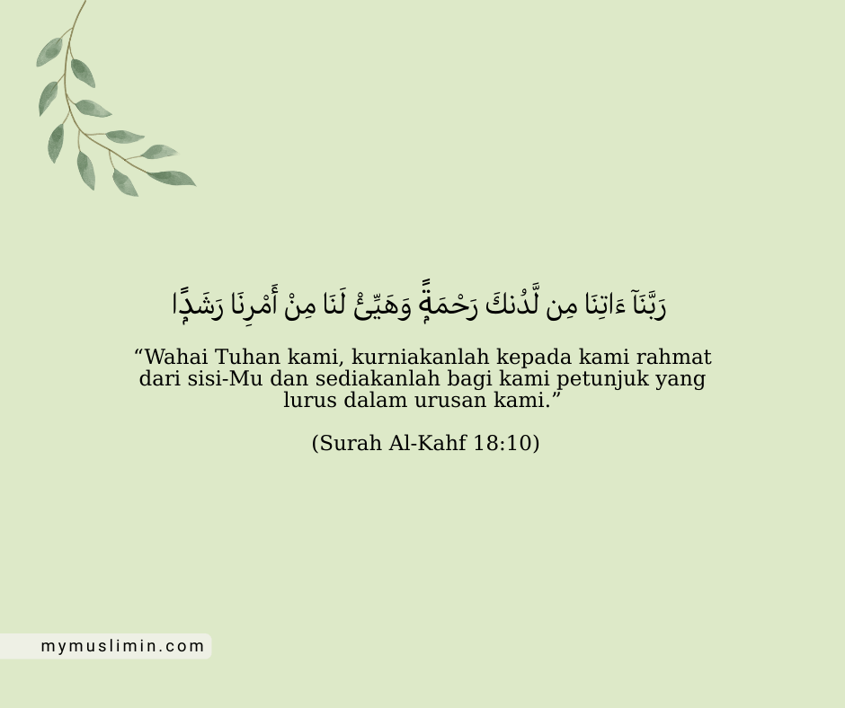 “Wahai Tuhan kami, kurniakanlah kepada kami rahmat dari sisi-Mu dan sediakanlah bagi kami petunjuk yang lurus dalam urusan kami.”