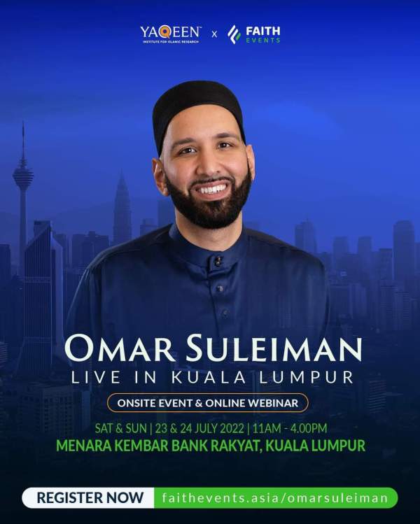 Join Imam Omar Suleiman, Founder President of Yaqeen Institute, in his upcoming seminar in Kuala Lumpur.