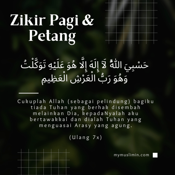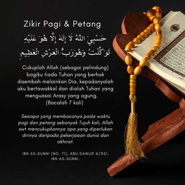 Sesiapa yang mengamalkannya pada waktu pagi dan petang sebanyak 7 kali, Allah SWT mencukupkannya apa yang diperlukan dirinya daripada pekerjaan dunia dan akhirat.